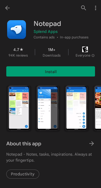 Something I found odd is that the name of the app inside Settings is "Alder Notes" but in the app header and Play store it's called "Notepad".