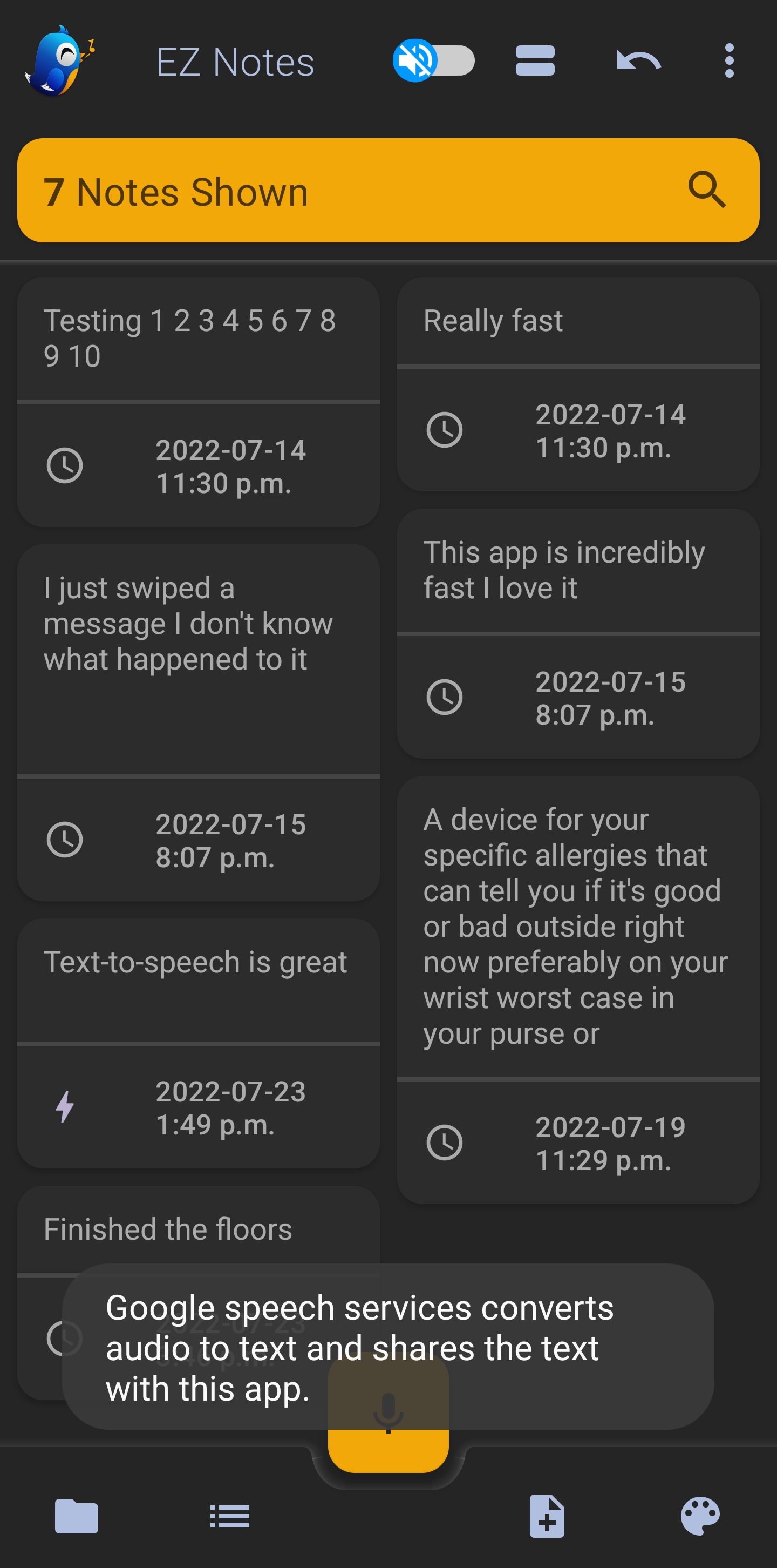 The app is really quite amazing. With a single click, it can record my voice, transcribe the words, and store them in a new text note amazingly fast. I was blown away by the simplicity and the speed of it. I even like the logo which sounds odd but it catches my attention! This is the perfect app if you need to remember something or take some fleeting notes.
