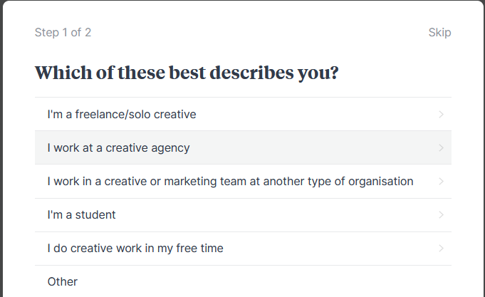 The service is targeted at creatives as you can see from the welcome screen on the Web app.