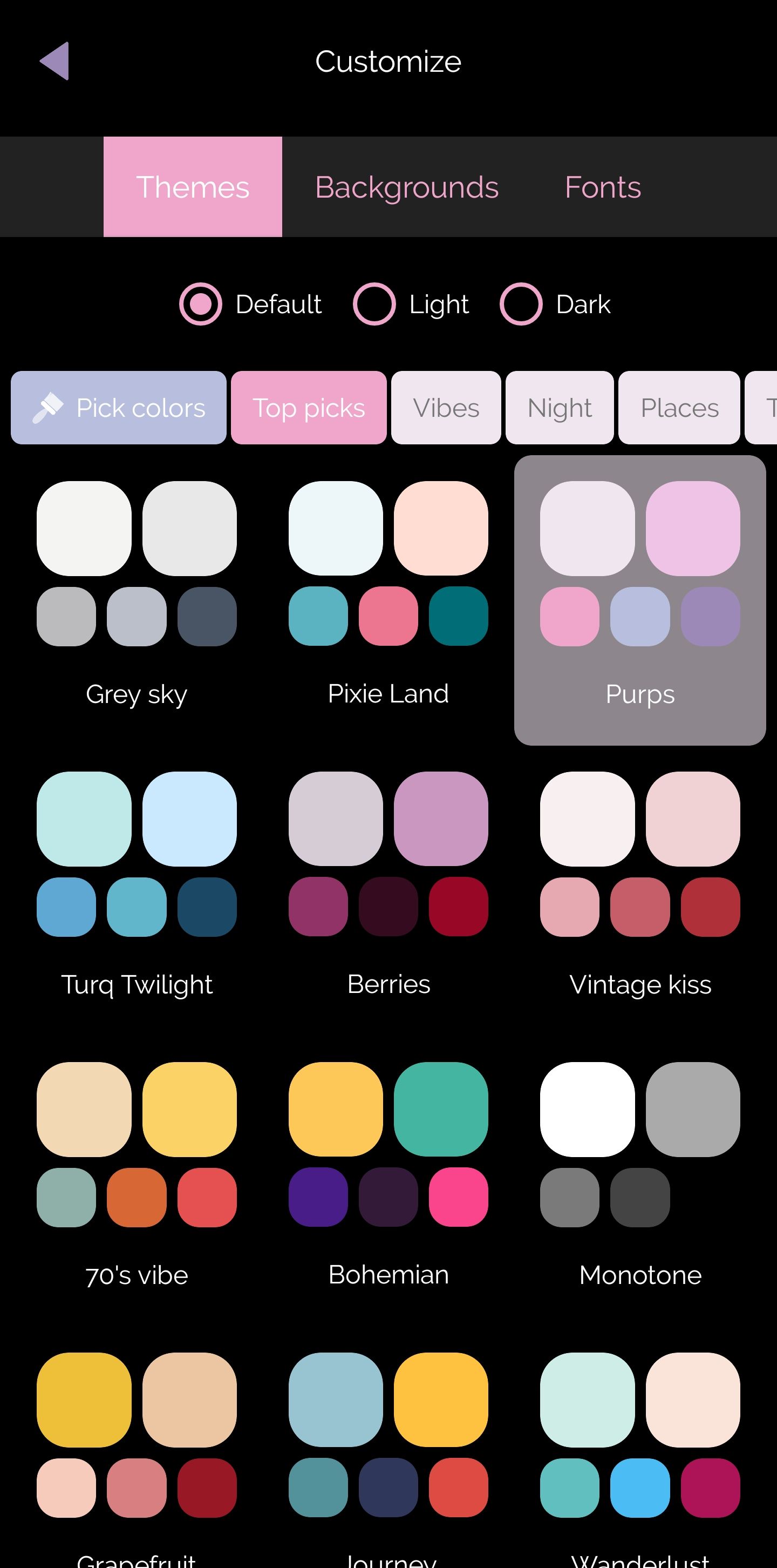 - Many background themes: background colours which I liked, background photos which I didn't find useful